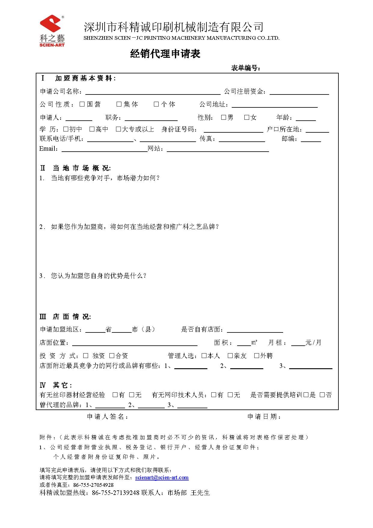 2. 加盟商需有一定的网印设备背景,具有独立为客户提供服务的能力。
